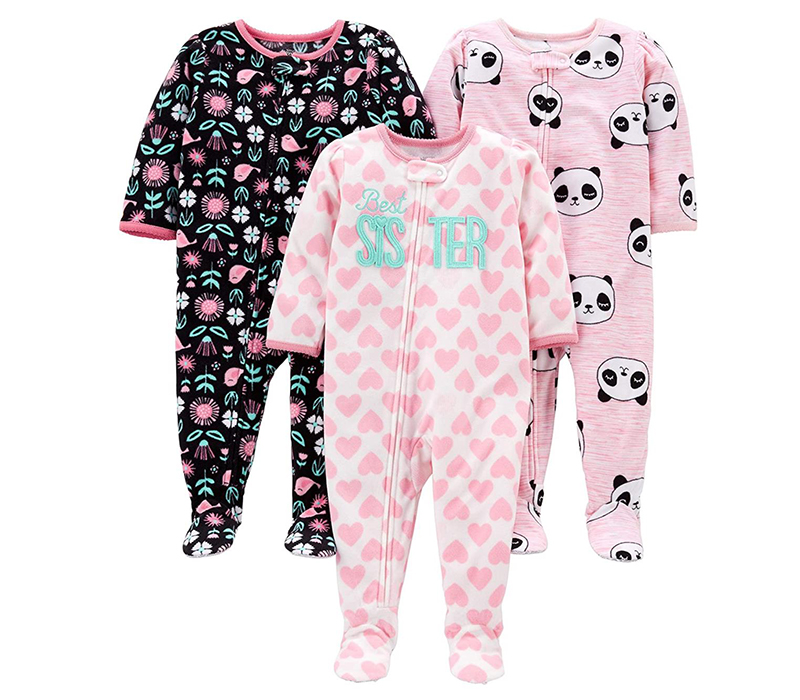 Gripper-foot pajamas featuring fun patterns and appliques